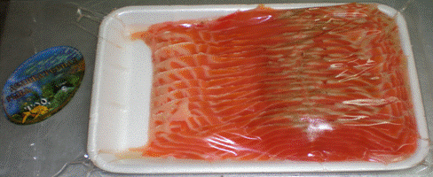 Форель (нарезка, отборная, развесная, в лотках, упакована целлофаном, слабосоленая)