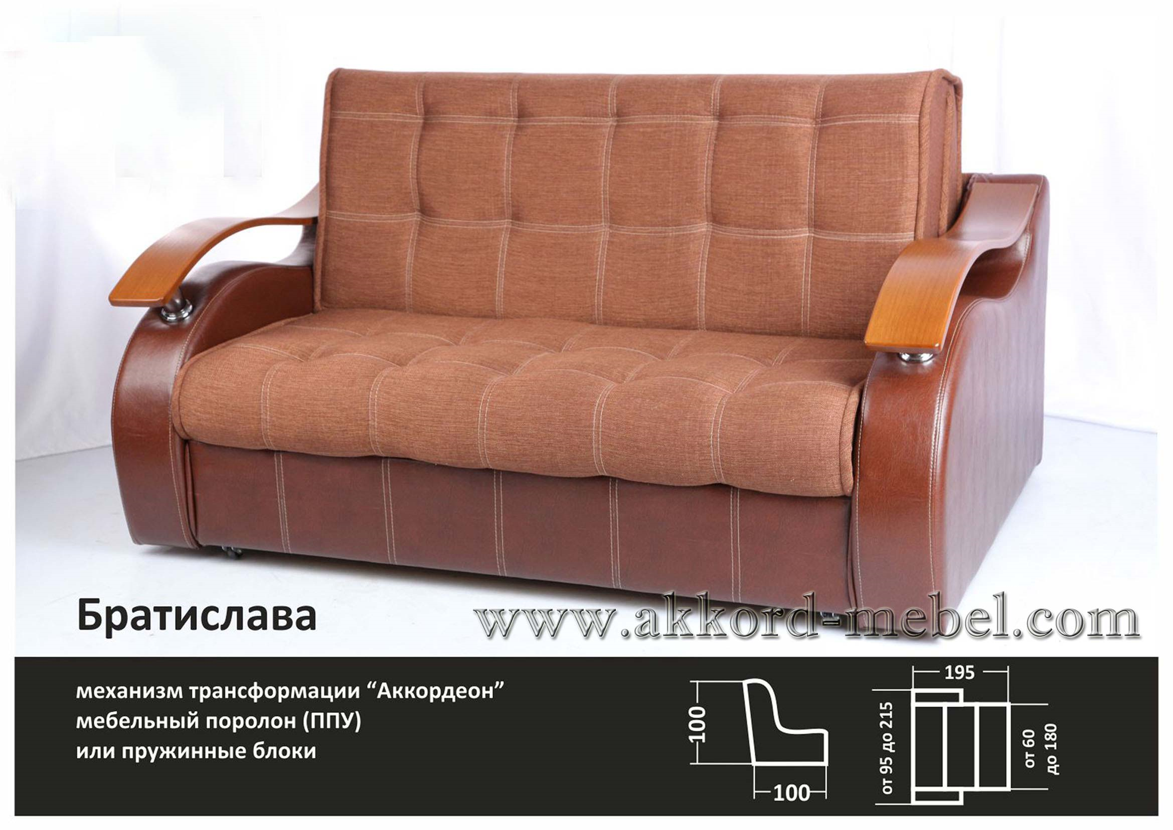 Стандартный вариант: диван-аккордеон 120 (см) спальное место, кресло-кровать аккордеон 60 (см); Наполнение -ППУ.