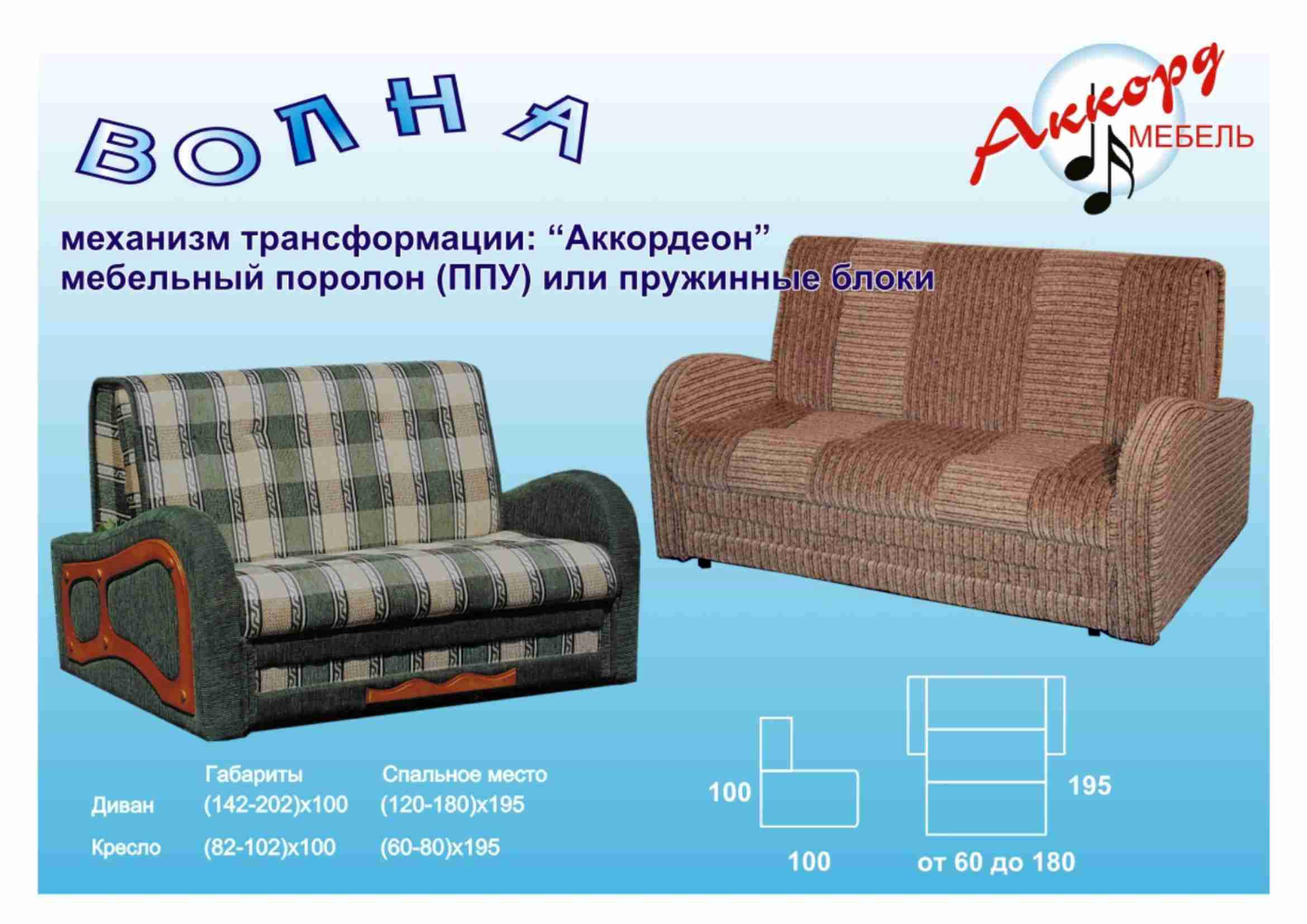 Спальное место: ширина от 60 (см) до 180 (см); длина 195 (см).