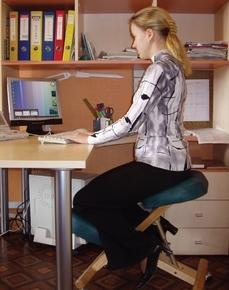 При использовании регулируемой опоры - стула снимается нагрузка с позвоночника, за счет переноса части веса на колени. Благодаря этому, позвоночник разгружается, диски не пережимаются, улучшается кровообращение, спина выпрямляется и образовавшаяся при этом степень свободы дает эффект легкой разминки.