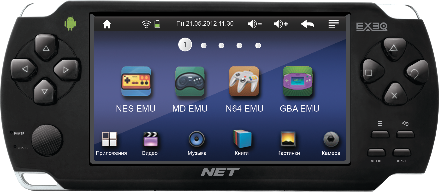 Наш ответ - EXEQ NET, новая игровая консоль, работающая под управлением операционной системы Android и оснащенная сенсорным экраном в 4,3 дюйма! С EXEQ NET вы сможете не только играть в уже полюбившиеся игры, но и скачивать последние новинки с Android Market. Играйте, смотрите фильмы, слушайте музыку, бороздите просторы интернета – делайте то, что Вам нравится, и получайте только позитивные эмоции c EXEQ NET!
