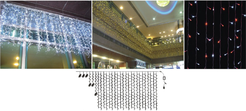 Расстояние между светодиодами в светодиодной гирлянде "Бахрома" - 10 см.