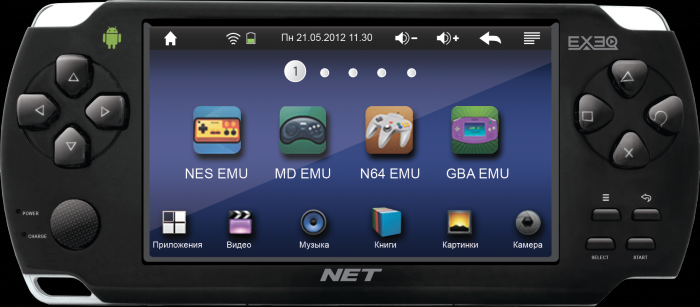 Наш ответ - EXEQ NET, новая игровая консоль, работающая под управлением операционной системы Android и оснащенная сенсорным экраном в 4,3 дюйма! С EXEQ NET вы сможете не только играть в уже полюбившиеся игры, но и скачивать последние новинки с Android Market. Играйте, смотрите фильмы, слушайте музыку, бороздите просторы интернета – делайте то, что Вам нравится, и получайте только позитивные эмоции c EXEQ NET!