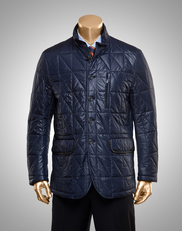Внутренний карман с трехцветными обтачками из тесьмы и «молнией» на левой полочке подкладки, накладной карман с кнопкой на правой полочке подкладки.