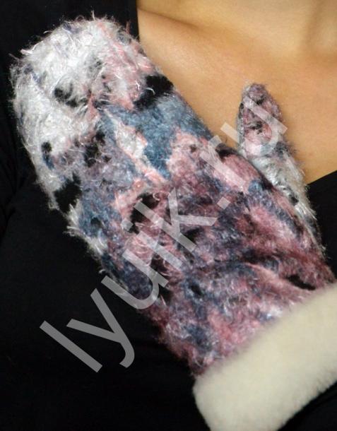 Варежки из итальянской шерсти с опушкой из меха мутон.